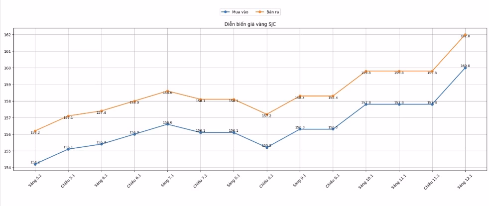 Đồng thời, Bảo Tín Minh Châu và Vàng Bạc Đá Quý Phú Quý cũng cung cấp mức giá tương tự, với Phú Quý đưa ra dải giá 159,5‑162 triệu đồng/lượng và chênh lệch 2,5 triệu đồng/lượng.