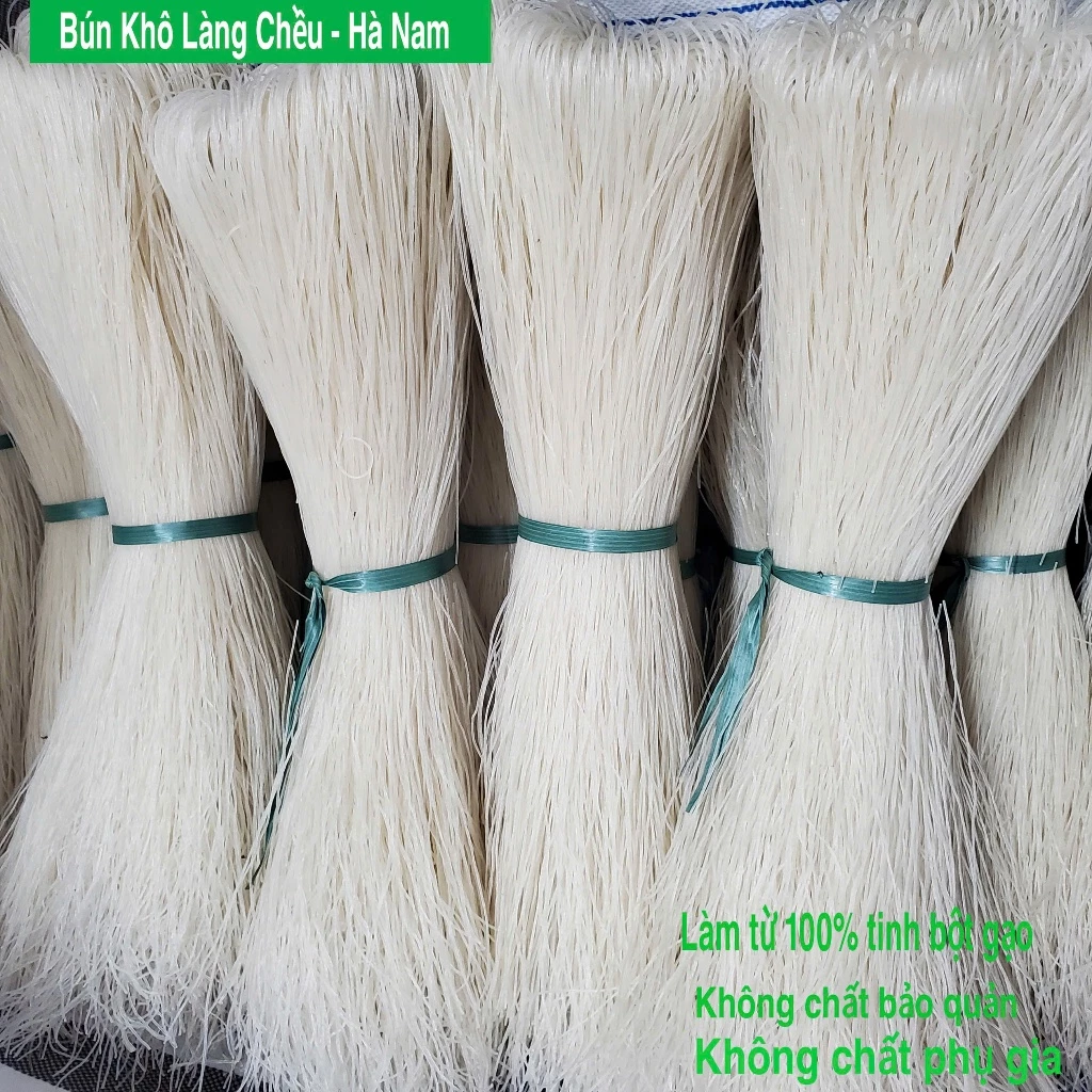 - Nguyên liệu: Combo 5 kg bún khô sợi nhỏ làng chều nhà e sản xuất được làm từ bột gạo thuần chủng, không chứa các chất phụ gia hay hóa chất độc hại.