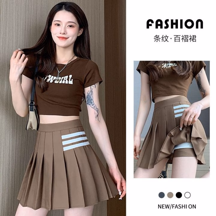 - Thiết kế: Eo thấp, Phong cách đi học, Váy xếp ly siêu ngắn