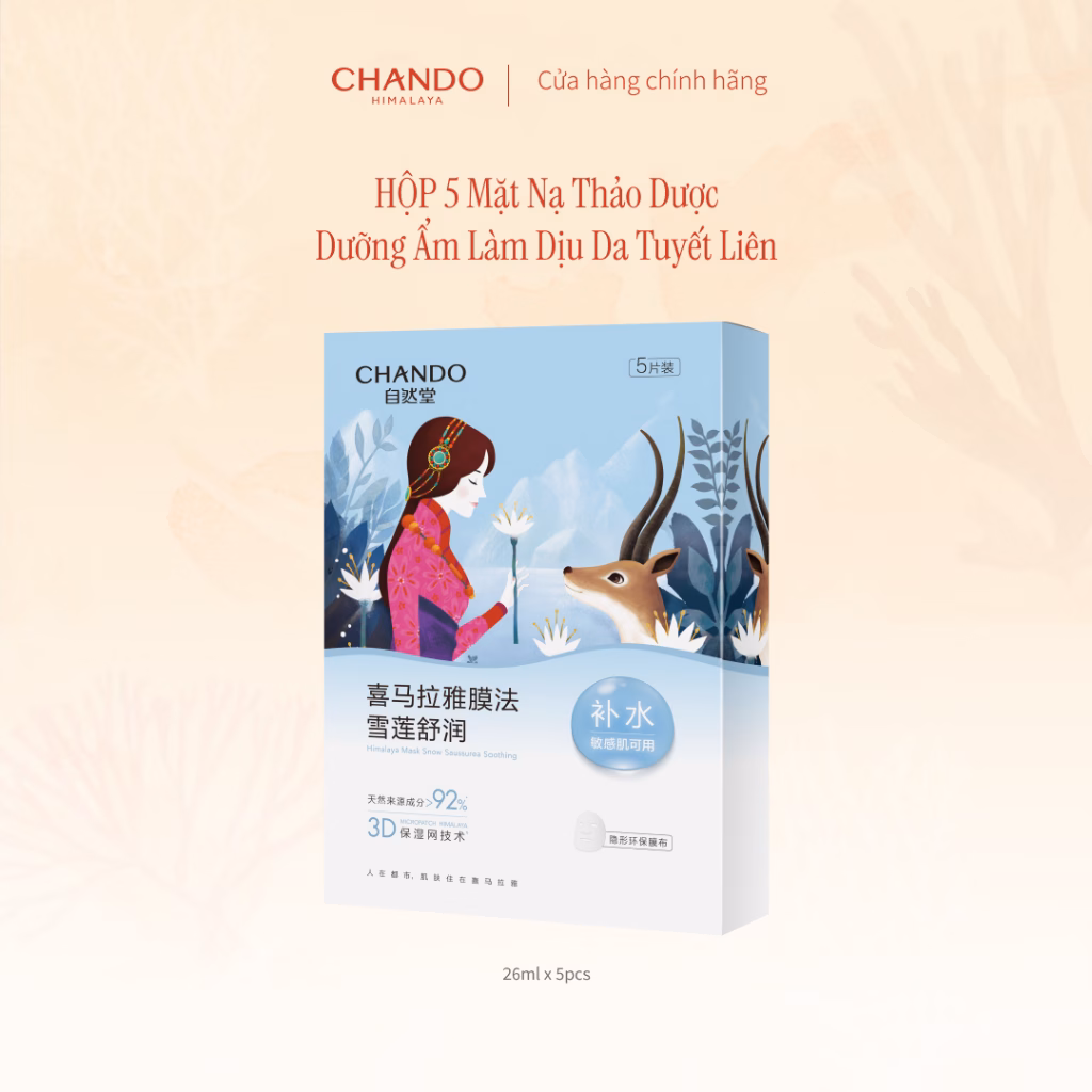 🔥 Hộp Mặt Nạ Thảo Dược CHANDO Himalaya 5 miếng x 26ml Chứa Hyaluronic Acid đang giảm giá!