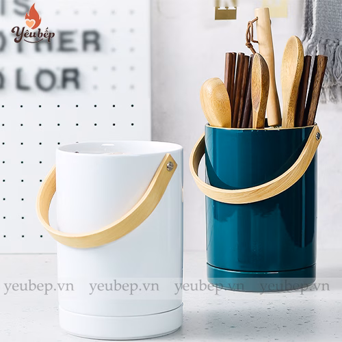 Ống đựng thìa đũa bằng gốm sứ có đế gỗ – Lựa chọn hoàn hảo cho không gian bếp nhỏ