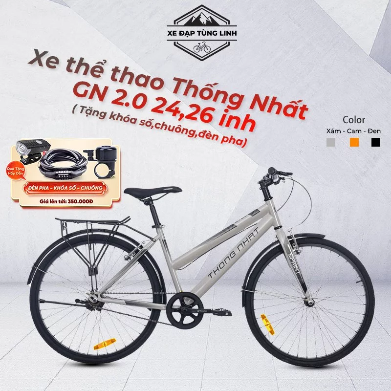 🔥 Xe Đạp Thống Nhất GN 2.0 – Bánh 24/26 Inch, Tặng Chuông, Đèn Pha, Khóa Số – Thế Giới Xe Tùng Linh đang giảm giá!