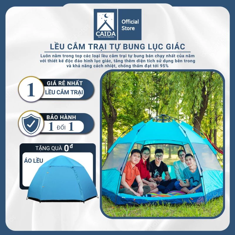 - Thiết kế hiện đại và tiện dụng: Lều lục giác tự bung có thiết kế đẹp mắt và tiện dụng, giúp bạn dễ dàng lắp dựng và sử dụng.