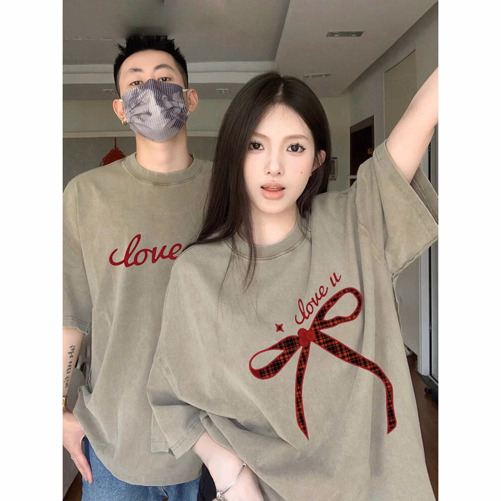 🔥 Áo đôi nam nữ dễ thương hình nơ và trái tim, Áo cặp đôi chất liệu 100% cotton 2 chiều cao cấp đang giảm giá!