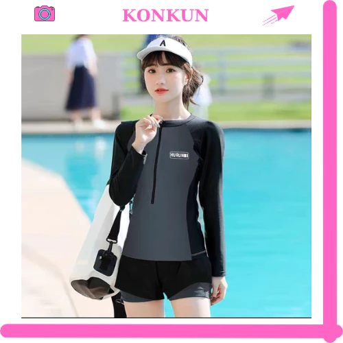 Đồ Bơi Nữ Đồ Tắm Biển Hai Mảnh Tay Dài Quần Đùi Thời Trang Phong Cách Kín Đáo KONKUN MS143 – Lựa chọn hoàn hảo cho phong cách kín đáo