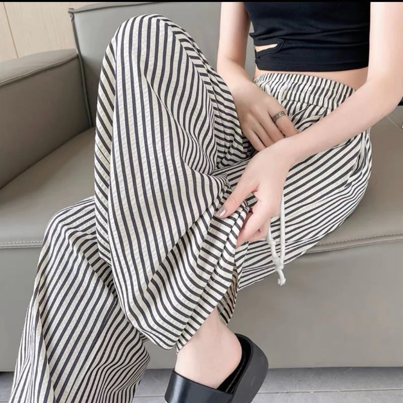 🔥 Quần Ống Rộng Kẻ Sọc Chất Liệu Đũi Xốp Siêu Mềm Mát Mặc Mùa Hè Siêu Xinh đang giảm giá!