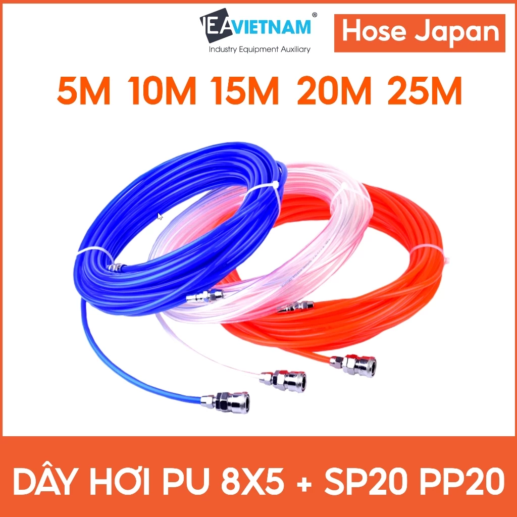🔥 Combo 5m 10m 15m 20m 25m 30m dây hơi khí nén phi 8*5mm có khớp nối nhanh SP20 PP20 đang giảm giá!