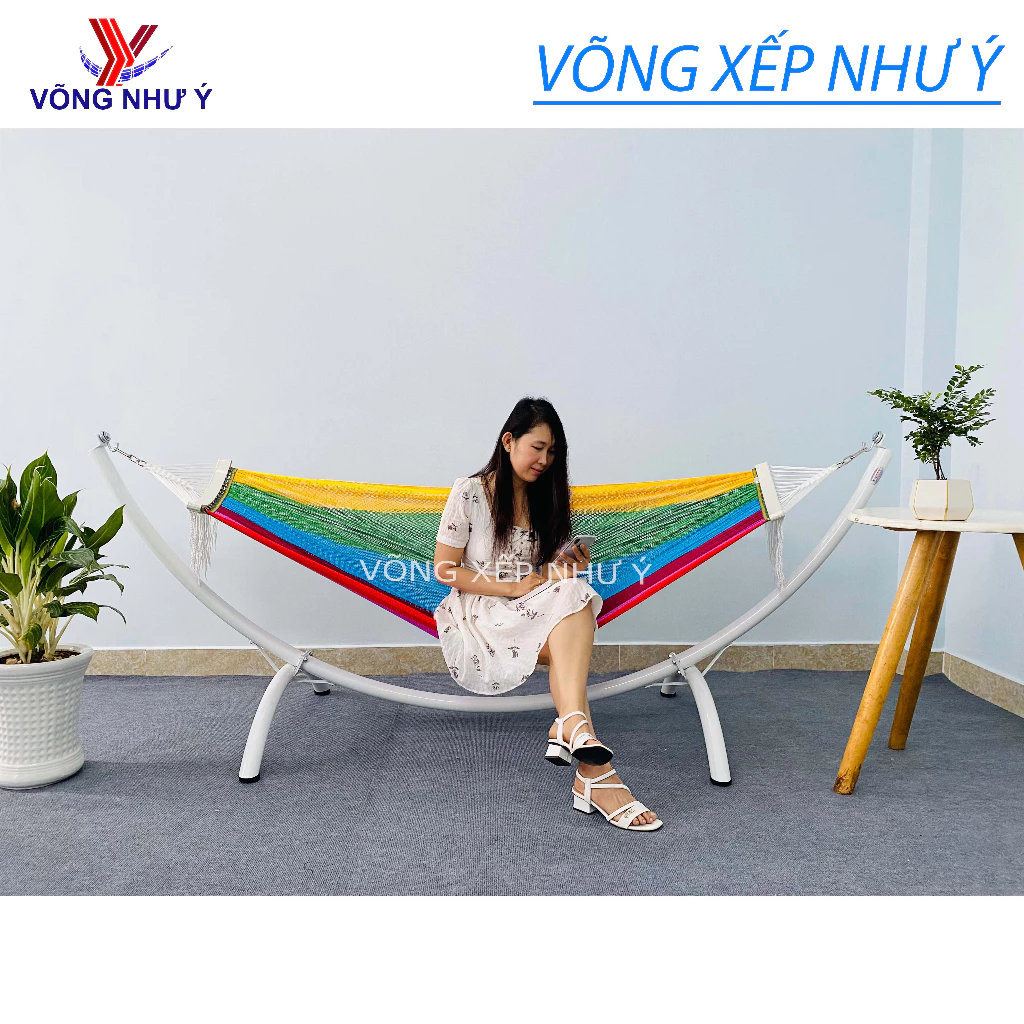 Một trong những sản phẩm võng xếp bán nguyệt được người dùng ưa chuộng hiện nay là bộ võng xếp bán nguyệt Như Ý cao cấp. Sản phẩm này có thiết kế đẹp mắt, khung võng được làm bằng chất liệu cao cấp, có thể chịu lực lên đến 250kg.
